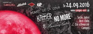 Im Mittelpunkt des Geschehens sind dabei die 3 Clubs auf dem Max-Planck-Ring in Illmenau, die sich 3 unterschiedlichen musikalischen Vorlieben widmen und so neben einer Entscheidung für die favorisierte Band auch eine klare Kategorisierung seines Geschmacks erfordern. Ganz nebenbei sei erwähnt, dass ich dieses Konzept sehr gelungen finde, denn die Clubs bieten auch außerhalb besonderer Veranstaltungen ein sehr differenziertes schwarzes Programm, bei dem es durch die räumliche Trennung kaum zu „Wanderungen“ kommen dürfte, die bei anderen Clubs durch das wechselnde Set verursacht werden könnte. Wenn man sich dann entscheiden kann, was man am liebsten hört. Zurück zum Campus-Noir und dem Programm.