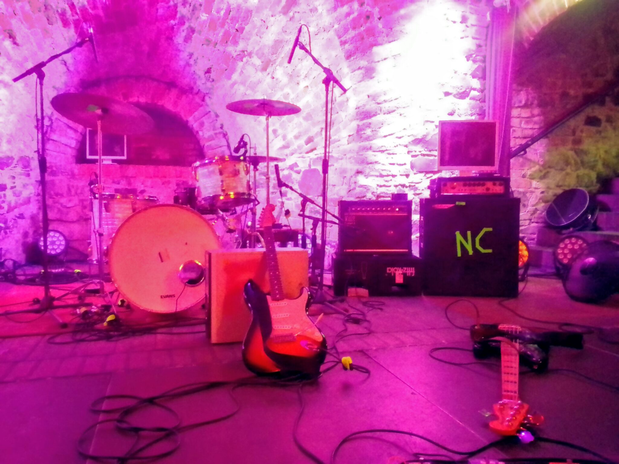 Spielstätte war die Halle D des Werk 2 in Leipzig, die vielen von Euch durch das Gothic Pogo Festival ein Begriff sein dürfte, das jährlich parallel zum WGT stattfindet. Um 19 Uhr sollte Einlass sein und halbwegs pünktlich kam ich dort auch an. Man hörte noch die Band proben und am Eingang erfuhr ich, dass sich der Einlass verschiebt, da die Gruppe mit Verspätung eintraf. Also hieß es bis halb 8 warten und dann endlich öffnete sich die Tür.