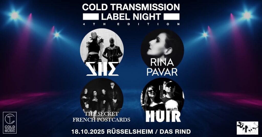 Während SYZYGYX und Kalte Nacht in ihre jeweilige Heimat zurückkehren, bereiten Suzy und Andreas das Familientreffen vor: Am 18.10.2025 findet die Cold Transmission Label Night in Rüsselsheim im Rind statt. Diesmal mit vier tollen Bands aus ganz Europa – SIIE aus Hamburg, Rinar Pavar aus Leipzig, The Secret French Postcards aus Schweden und HUIR aus Spanien.