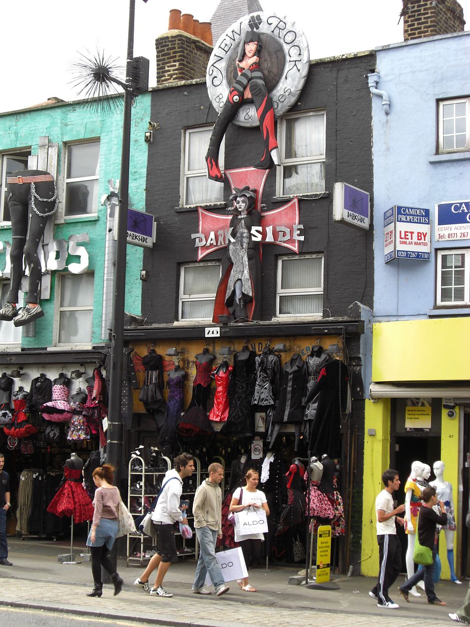 Aus lauter Verzweifelung fahre ich nach Camden Town, um wenigsten dort bei „Black Rose“ oder im „Darkside“ ein bisschen Gothic-Shopping-Luft zu atmen. Doch zur meinem Entsetzen sind beide Läden neu belegt und verkaufen den üblichen Camden-Schrott, lediglich an den aufwendigen Außenfassaden kann man sich noch versichern, vor der richtigen Häuserzeile zu stehen. Verzweifelt stolpere ich durch Camden Town und Camden Lock, auf der Suche nach dem dringend benötigten Gothic-Mana. Vor dem Cyberdog – Camdens hämmernder Techno-Knicklicht-Bude – halte ich ein, bereit mich in den mentalen und seelischen Freitod zu stürzen, die Pikes gegen ein paar Puschel einzutauschen und mit Neon-Netzhemd und blinkender Sonnenbrille zumindest ein bisschen Andersartigkeit einzukaufen. Ob die Gruppe von Schulmädchen, die in diesem Augenblick zielstrebig in meine Richtung eilen mich von meinem Vorhaben abbringen wollen? Sie möchten ein Foto machen. Von mir! Im Casual-Gothic-Undercover Look mit einem sicherlich verweinten Kajal und einem Rest Lippenstift, denn der Löwenanteil der Lippenkunst ist irgendwo zwischen Covent Garden und der Tube einem Burrito zum Opfer gefallen.