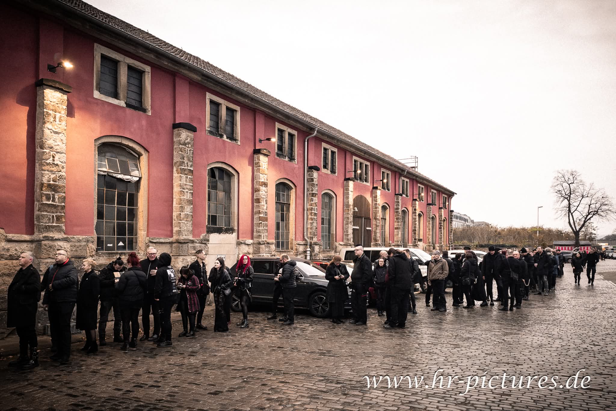 Den Weg zum Alten Schlachthof haben wir in zwanzig Minuten hinter uns gebracht. Vor dem Eingang hatte sich eine Schlange gebildet, die begierig auf den Einlass wartete. Der schwarze Tross setzte sich in Bewegung. Kurz vor dem Scanner befiel mich die Frage, ob das privat erworbene Ticket dem Laser standhalten würde oder ob wir einem Betrüger aufgesessen waren. Wir durften passieren.