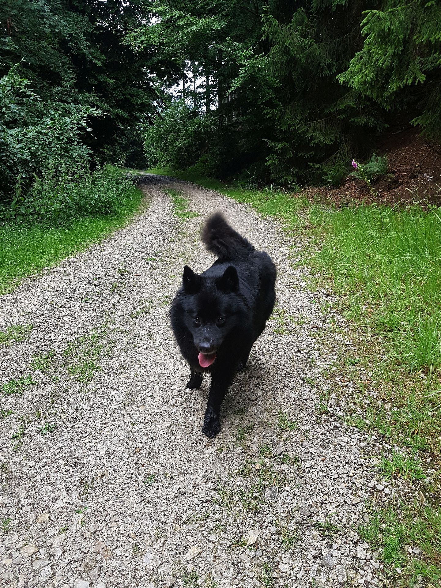 So kam es dann, dass ich mich als Fahrer, Zelt-Aufbauer, Beleuchter, Aushilfsschmuckverkäufer, Nahrungsbeschaffer und Hunde-Sitter heldenhaft einsetzte und mir so im Nachbericht, den Orphi in ihrem Blog veröffentlich hat, den Titel Ehe-Grufti verdiente. Fast wäre es noch in die Hose gegangen, denn ich habe den Popo nicht hochbekommen und die Autobahn glänzte durch hohes Verkehrsaufkommen. Letztendlich fanden wir uns aber recht pünktlich in einer Wolke auf 386m wieder und konnten mit dem Aufbau des Zeltes beginnen. Nachdem ich einige Minuten ratlos mit unterschiedlich langen Stangen, Verbindern und Eckelementen gekämpft hatte, stand das kleine schwarze Verkaufszelt und sah zwischen zwei übergroßen weißen Zelten aus wie eine Hobbit-Höhle im Teutoburger Wald. Nachdem ich beim Aufbau geholfen und meine Frau mit Essen und Kaffee versorgt hatte, kümmerte ich mich um Caya, unseren Grufti-Großspitz und seine natürlichen Bedürfnisse. Zusammen wollten wir die Gegend erkunden, Hermann besuchen und den Wald durchschnüffeln.