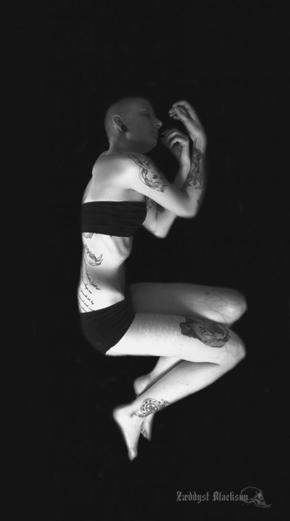 Beispielhaft kann man hier glaube ich das „Scar Project“ nennen, eine Fotoserie, die ich gegen Ende 2015 gestartet habe. Ziel dieser Serie war/ist es, genau das in den Fokus zu rücken, was normalerweise versteckt wird: Narben. Dabei war es mir egal, ob es sich um Unfall- Operations-, selbst oder durch Fremdeinwirkung entstandene Narben handelt. Größtenteils sind aber durch Selbstverletzung entstandene Narben dabei. Das Ganze habe ich versucht, in schwarz-weiß und sehr schattig, dunkel und künstlerisch umzusetzen. 08/15 Portraitbilder und Sonnenschein kommen für mich nicht infrage, ich will immer Emotionen mit meinen Bildern hervorrufen, gleich, ob das Geborgenheit, Ekel, Zorn, Liebe, Trauer oder Entsetzen ist. Natürlich mache ich aber auch einfach gerne Bilder mit viel Kunstblut und Portraitshootings mit interessanten Szene-Typen.