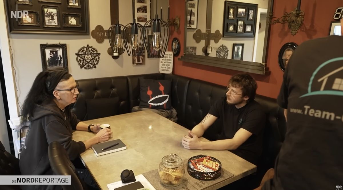 Ein Blick in das Zuhause der Tatortreinigerin offenbart dann ganz klar den Bezug zu Szene und bietet alles, was man sich als anständiger Grufti in die eigenen vier Wände stellen sollte. „Unser Einrichtungsstil ist hald ein bisschen anders. Manche vergleichen uns auch mit Satanisten, was absoluter Quatsch ist. Finde ich jedenfalls.“ sagt sie in der Dokumentation und stellt noch Paule vor, ein altes Schulskelett, das in einem Sarg im Wohnzimmer nach dem Rechten sieht.
