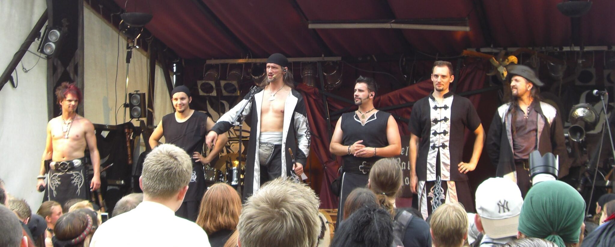 Das Publikum war wirklich gemischt. Mittelalteranhänger und LARP-Fans zwischen Cosplayern und Visus, allerlei schwarzes Volk (Metaller, Gothics, Waver) und natürlich auch Normalos in jeder Gruppenstärke. Das schöne war das friedliche miteinander und die angenehme Gruppenatmosphäre „Anders“ zu sein, für die Normalos muss das wie ein Karneval mitten im Sommer gewesen sein. Was dieses Festival so angenehm von anderen abhebt ist die eigentlich dauernde musikalische Untermalung mit Live-Musik, die das ganze zum Festival mutieren lassen. Die meisten Bands hatten auch mehrere Auftritte über den Tag verteilt und begeistern alle Anwesenden mit 30-45 minütigen musikalischen Einlagen, auch Headliner Saltatio Mortis waren den ganz Tag über zu sehen und zu hören und haben sich auch unter das Publikum gemischt und waren so nur von Eingeweihten als Künstler zu identifizieren.